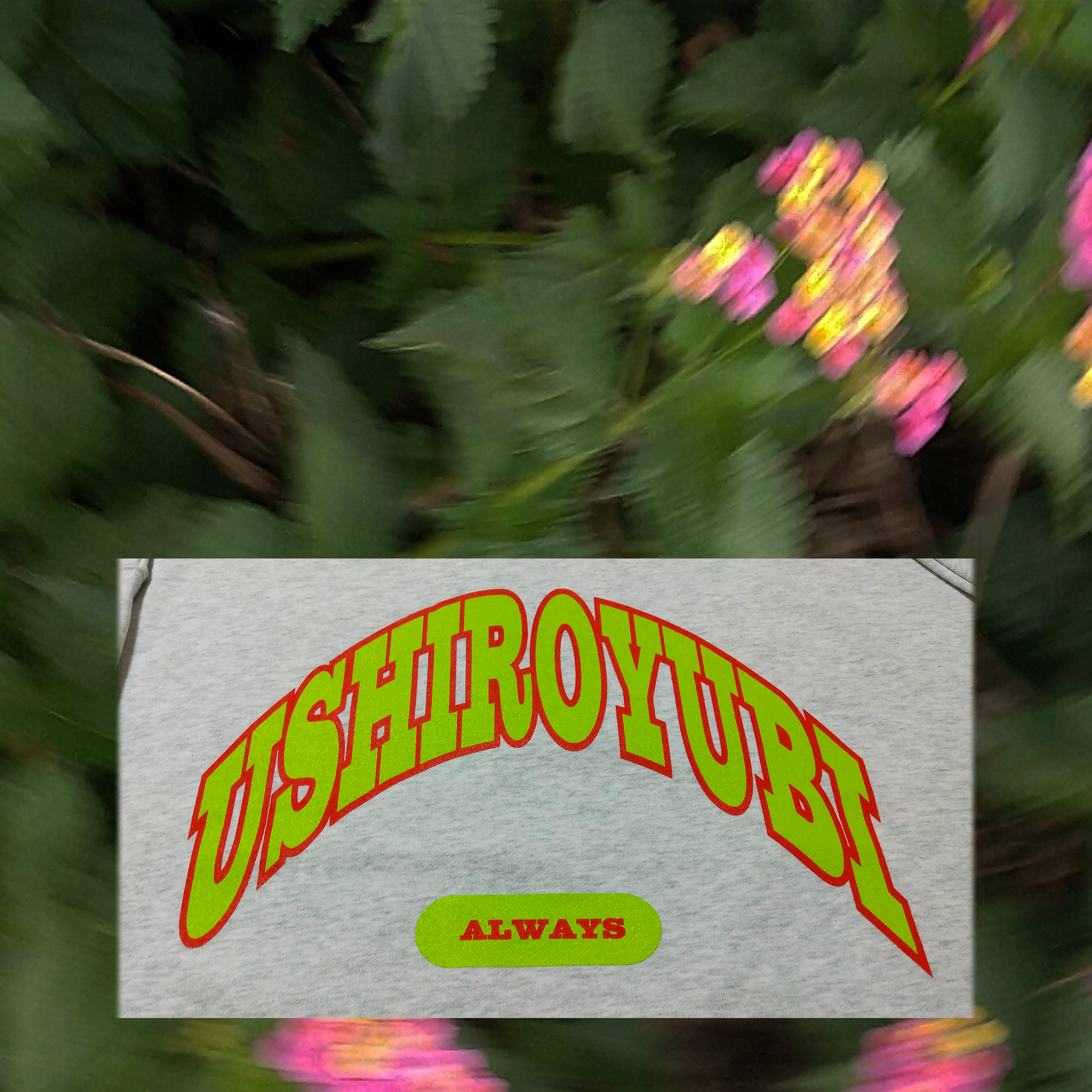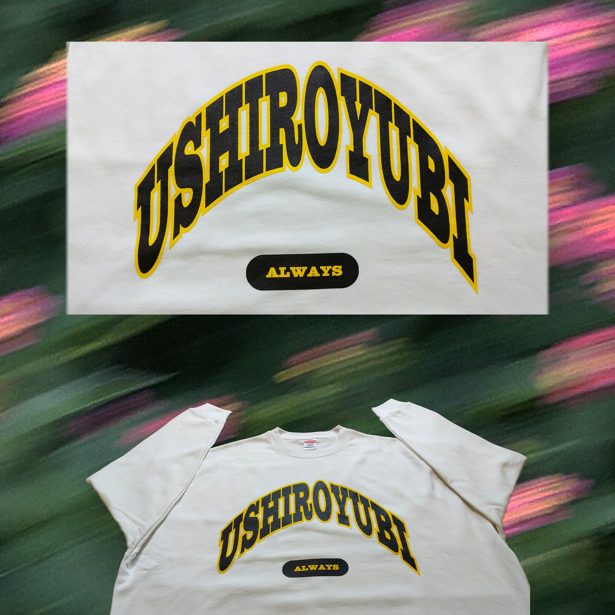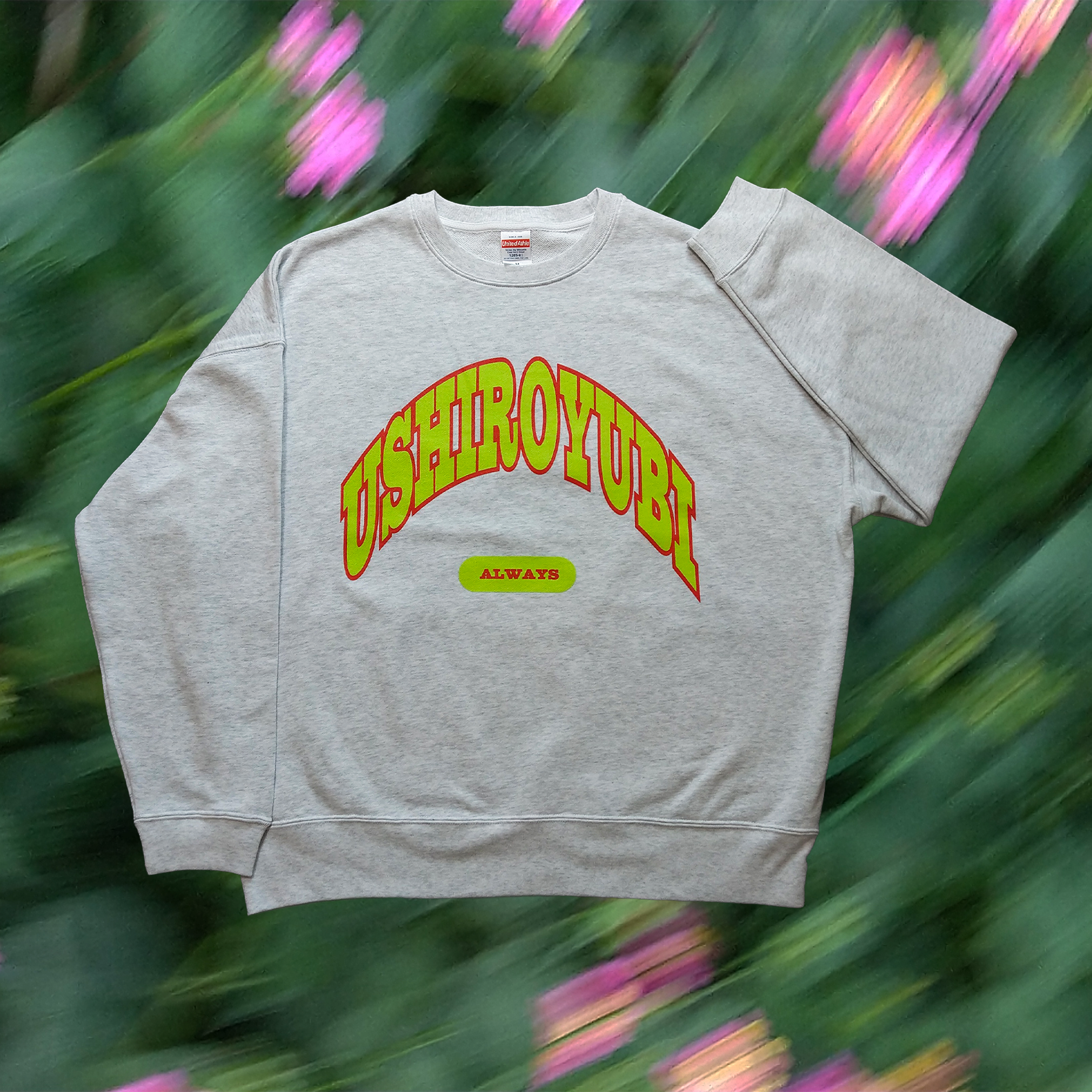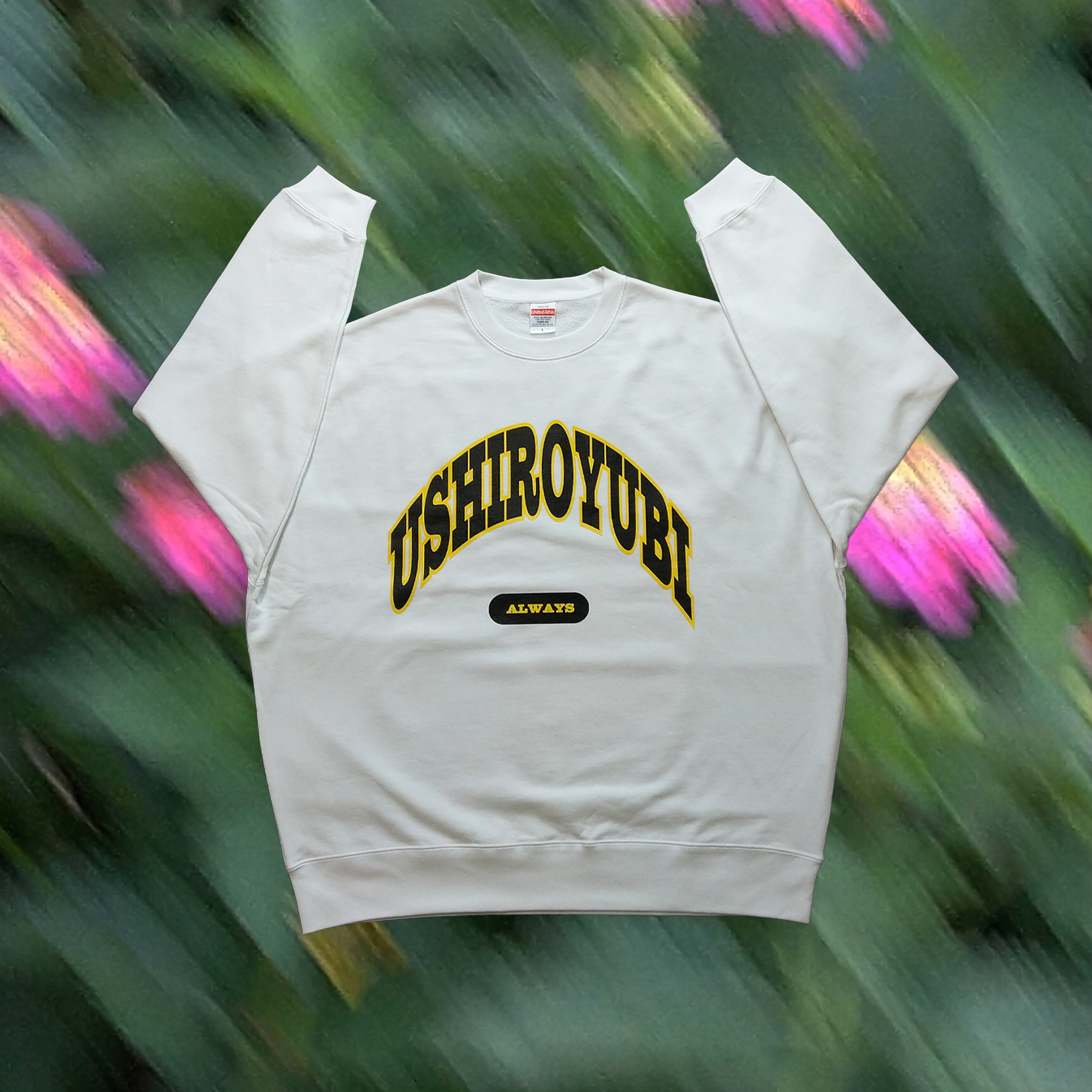 「USHIROYUBI UNIVERSITYトレーナー」 ホワイト アッシュ (シルクスクリーン)2色刷 受注生産品 ビッグシルエット