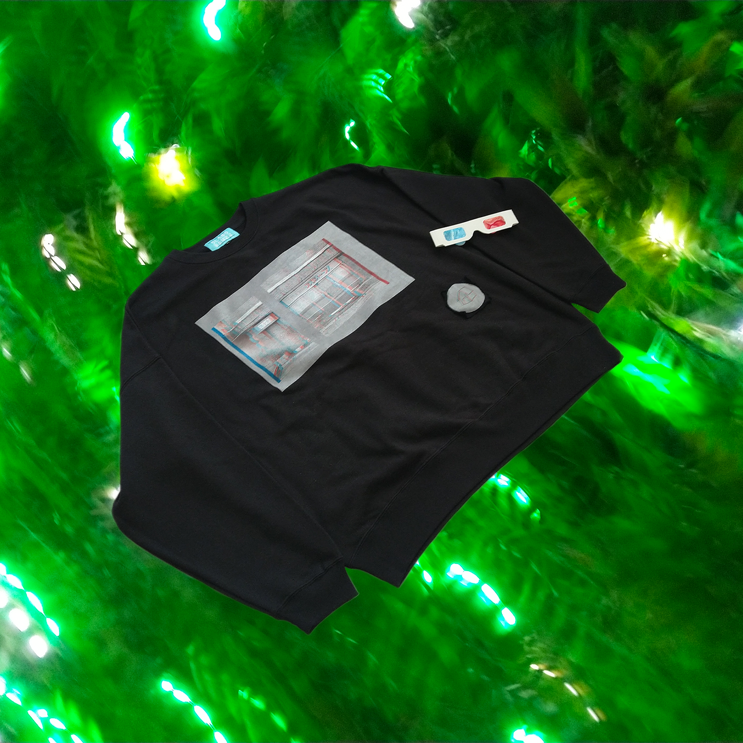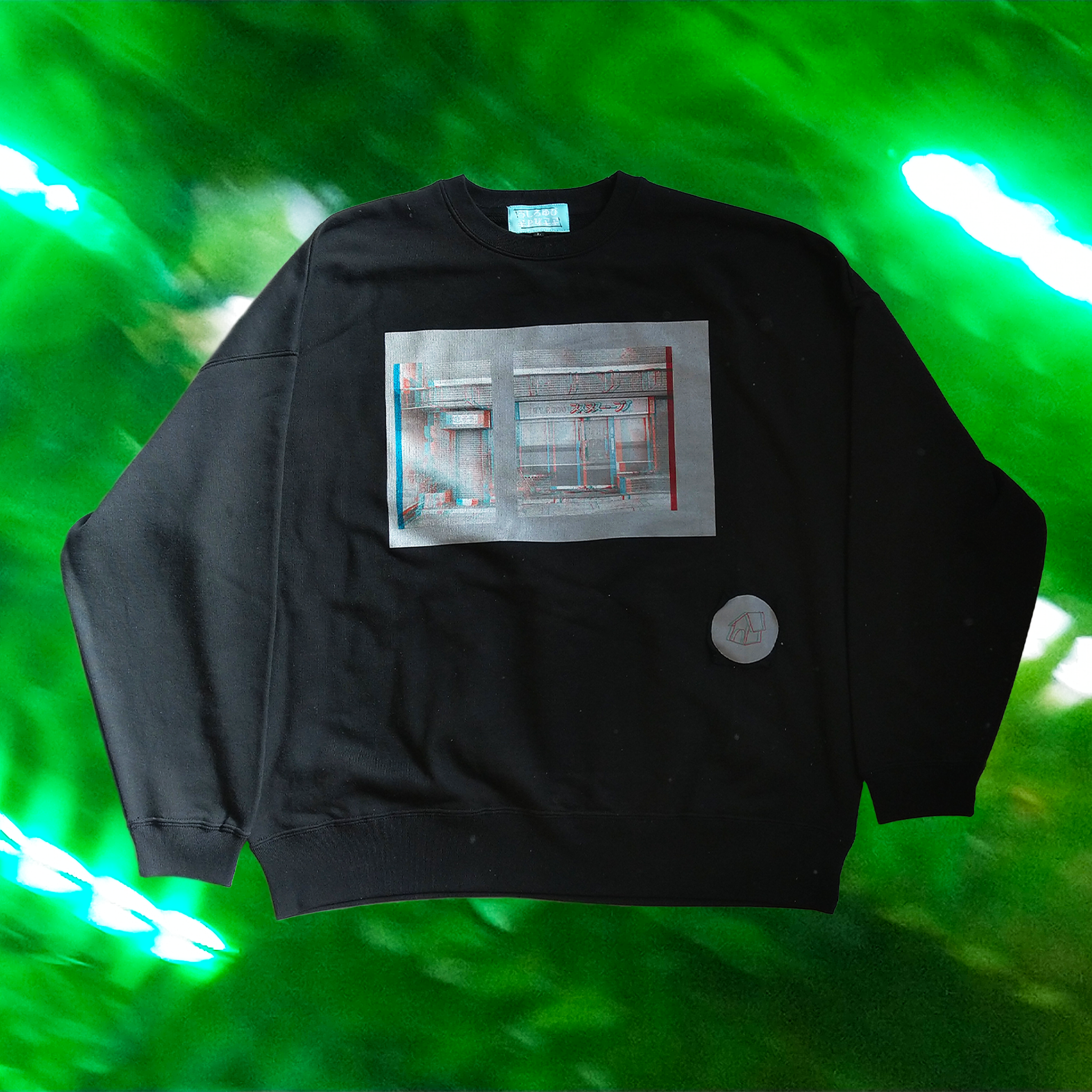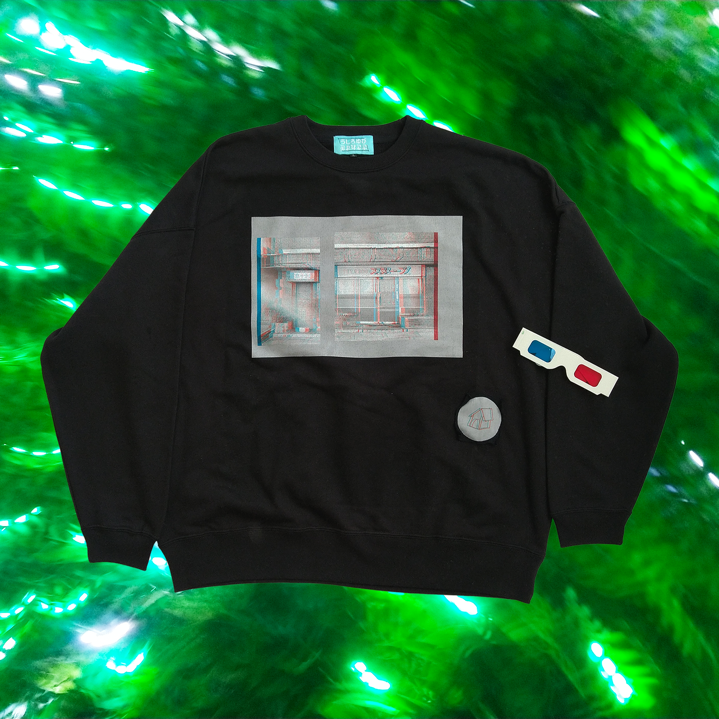 「犬小屋 3D POI プロトタイプ」ビッグシルエットトレーナー ブラック 3D眼鏡付き 犬小屋は縫い付け 受注生産品